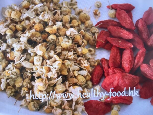 花茶店會有德國或羅馬生產的洋甘菊出售,味道非常清香,經常泡茶飲用,對眼睛不適、失眠、頭痛、精神緊張和感冒引起的肌肉疼痛等均有幫助。今天推介這款「洋甘菊杞子茶」,對眼睛疲勞、黑眼圈、浮腫都很具療效,也是疫症期間防疫抗疫適合飲用的保健茶。