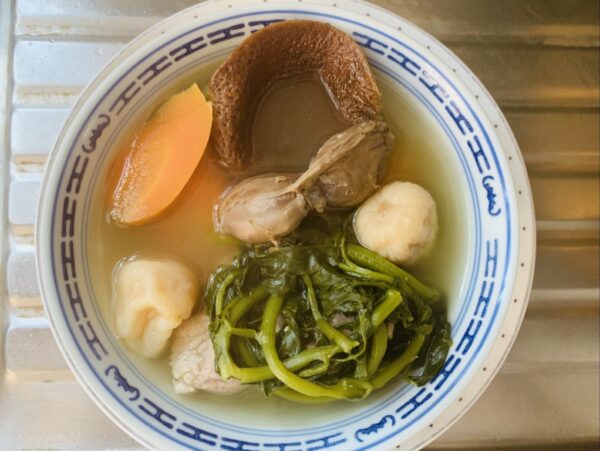 ~ 小貼士:但凡煮菜湯,最好待水大滾後才放入,湯就清香没有苦澀味。此清清甜美味,老少可飲,對咽乾喉涸及燥熱咳嗽者有舒緩作用。