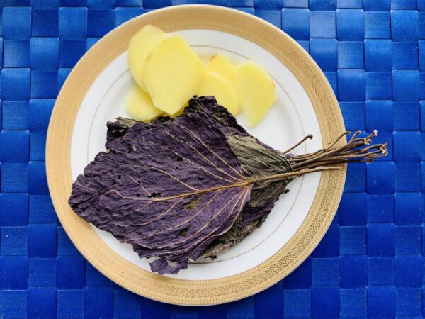 做法:紫蘇葉洗淨,生薑切片,用3碗水煮5分鐘,加入紅糖或黑糖煮溶即可趁温熱飲用,連服3~4劑。