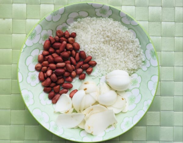 ~ 小貼士:圖中的是紅衣花生,紅色的衣更能改善凝血因子的缺陷。此粥對肺脾兩虛的肺氣腫人士亦具療效。但血液稠度高的長者最好吃花生時去衣才食。