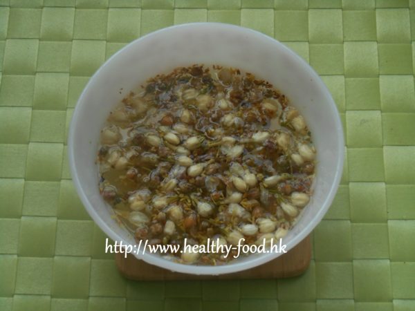 做法:將材料沖洗,用3碗半水煮15分鐘左右即可飲用。
