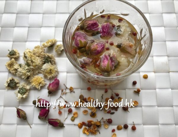 ~ 小貼士:此茶有助鬆弛神經、消炎解毒、美白淡斑、調節內分泌,且有助防輻射損傷,抗衰老等功效。月經不調婦女可常服。