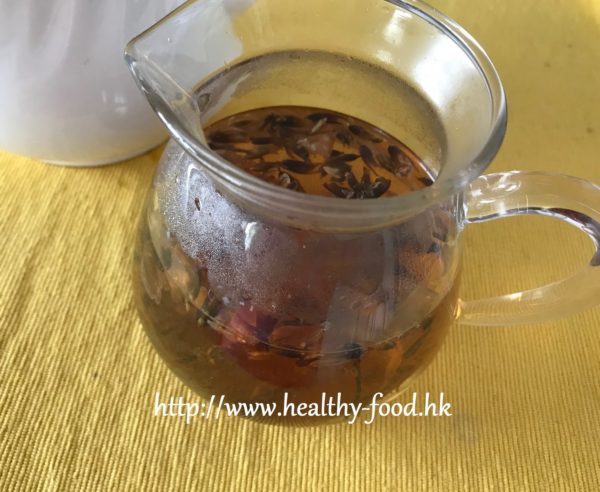 做法:全部材料放入壼內,加入開水,焗15分鐘後調入蜜糖即可供服,可沖泡至淡。
