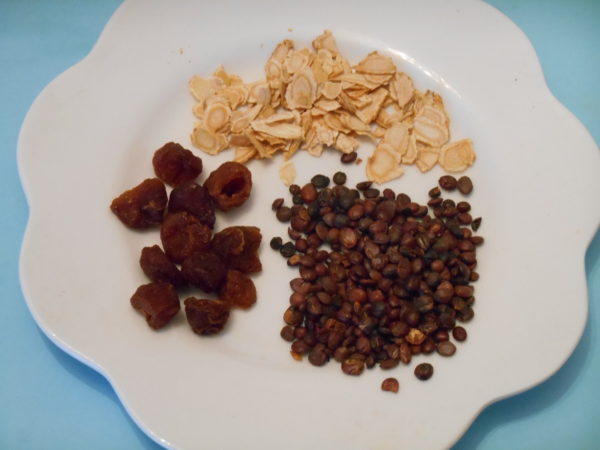 用料是:花旗參片滿1湯匙,圓肉15粒,炒香酸棗仁2湯匙,蜜糖少許。