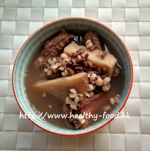 做法:粉葛撕去外皮,洗淨切塊;赤小豆、薏米,陳皮浸洗;排骨出水;全部材料用10碗水煮2小時成4~5碗,即可連湯料同食。