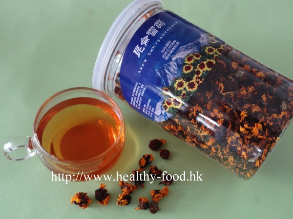 ~ 小貼士: 雪菊含維生素E甚高,有抗氧化,抗衰老等作用,更有抗癌作用.但低血壓人士及孕婦不宜服。雪菊較易生蟲,故最好存放陰涼乾燥地方,或存放於雪櫃.