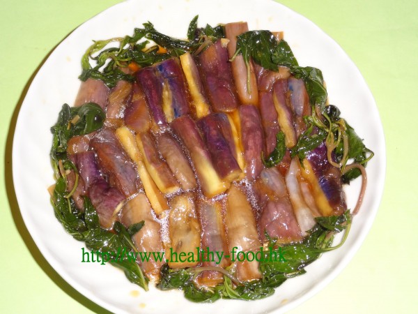 茄子很有益,但最吸油,酒家煮的茄子色澤紫紅油潤,因經過油炸,自已家常煮食就不宜泡油,炒都不好,最好清蒸。但清蒸茄子並不太好吃,如用蒜茸、薑茸、乾葱茸加九層塔葉爆香,加入調味,用來浸蒸好的茄子,就非常惹味,且有益氣行血,活血消腫等作用。