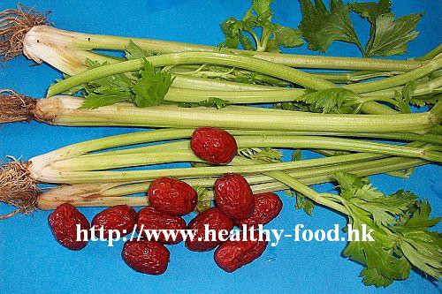 用料是: 中國芹菜4兩,紅棗8粒.