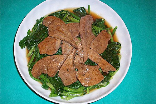 圖中這味[菠菜炒豬肝]就絕對不適合服薄血丸人士食用了.間中食些少含維生素K的綠葉蔬菜,燕麥等是無妨的,但不宜突然進食大量這類食物,知所避忌,就不會導致危險發生.