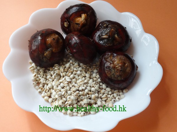 做法: 薏米洗淨;馬蹄去皮,切塊;將薏米,馬蹄用6碗水煮1小時,調入蜜糖即可供食.早、晚服.